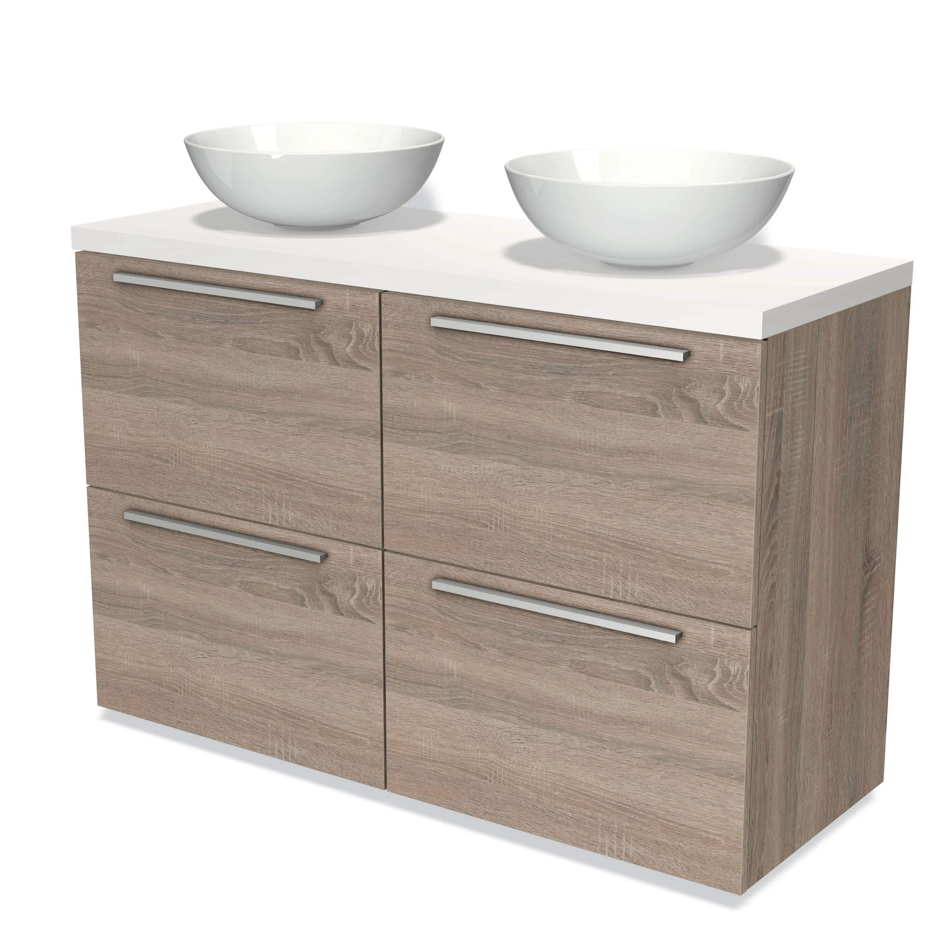 Badmöbel mit Konsole 120cm Modulo Plato Eiche 4 hohe Schubladen Flach Matt Weiß Platte