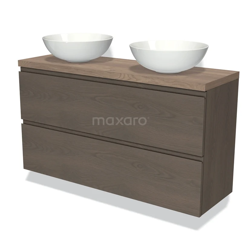 Badmöbel mit Konsole 120cm Modulo Plato Slim dunkelbraune Eiche 2 Schubladen grifflos