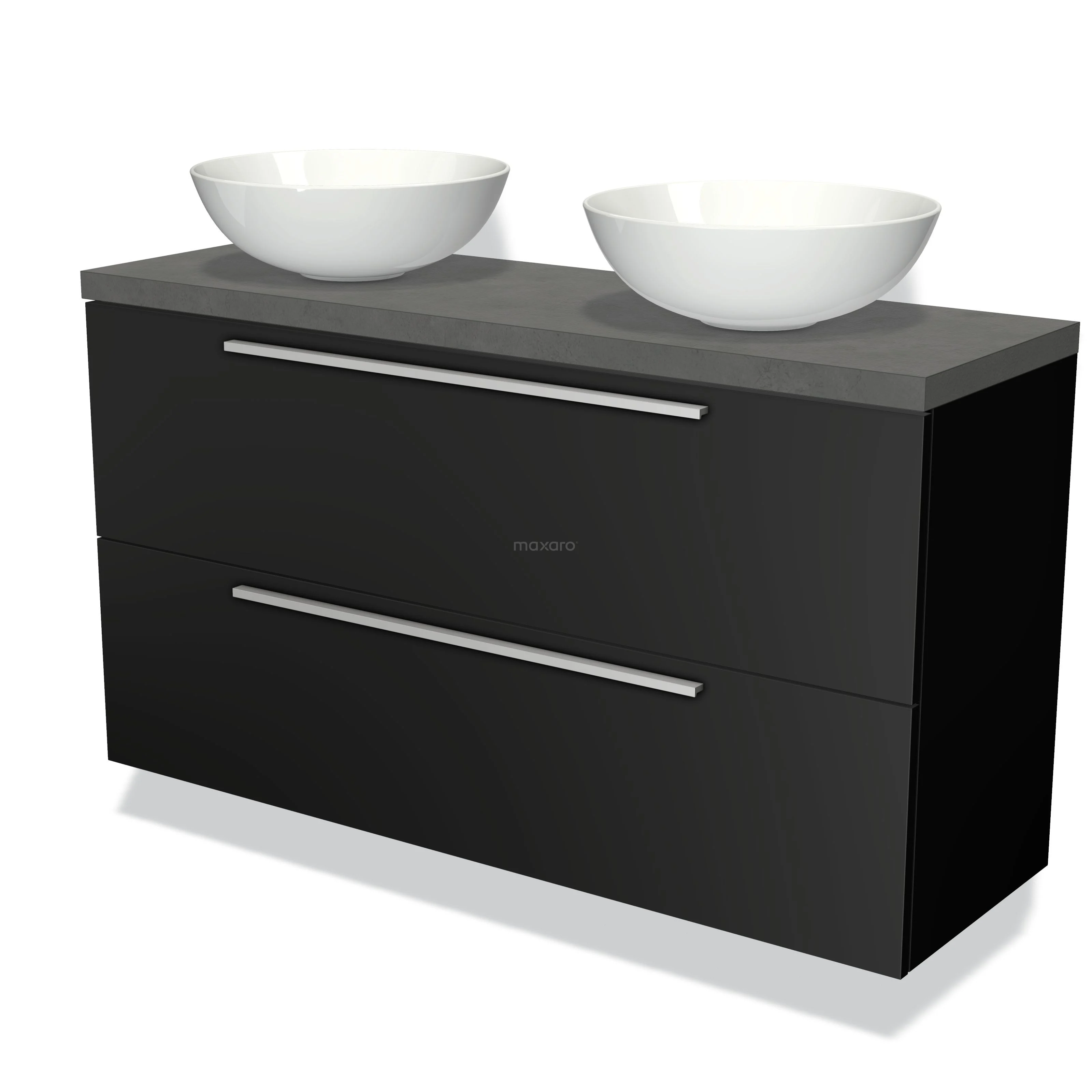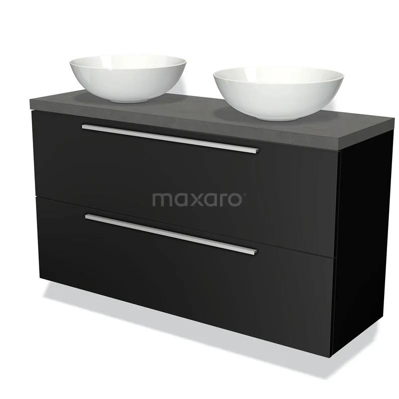 Badmöbel mit Konsole 120cm Modulo Plato Slim Matt Schwarz 2 Schubladen Flach