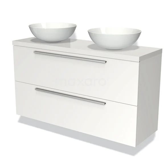 Badmöbel mit Konsole 120cm Modulo Plato Slim Matt Weiß 2 Schubladen Flach