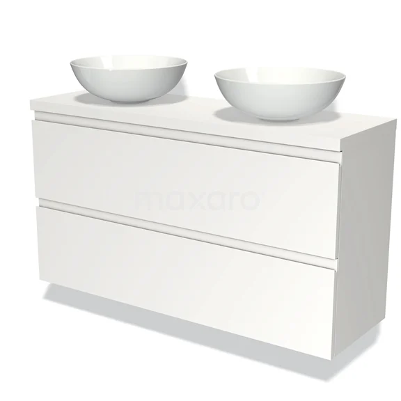 Badmöbel mit Konsole 120cm Modulo Plato Slim Matt Weiß 2 Schubladen Grifflos