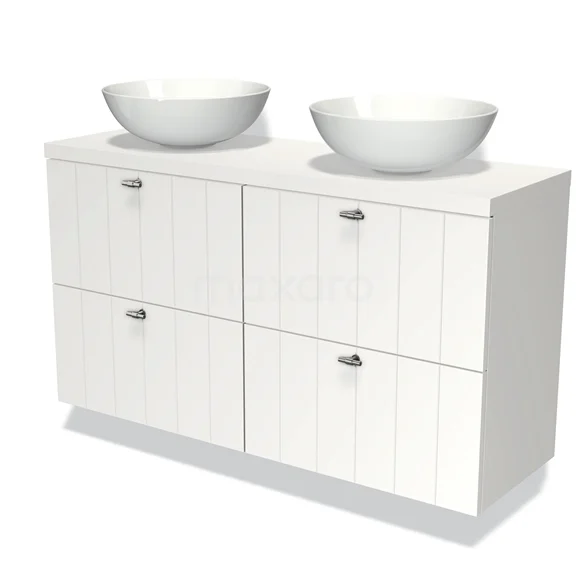 Badmöbel mit Konsole 120cm Modulo Plato Slim Matt Weiß 4 Schubladen Lamelle