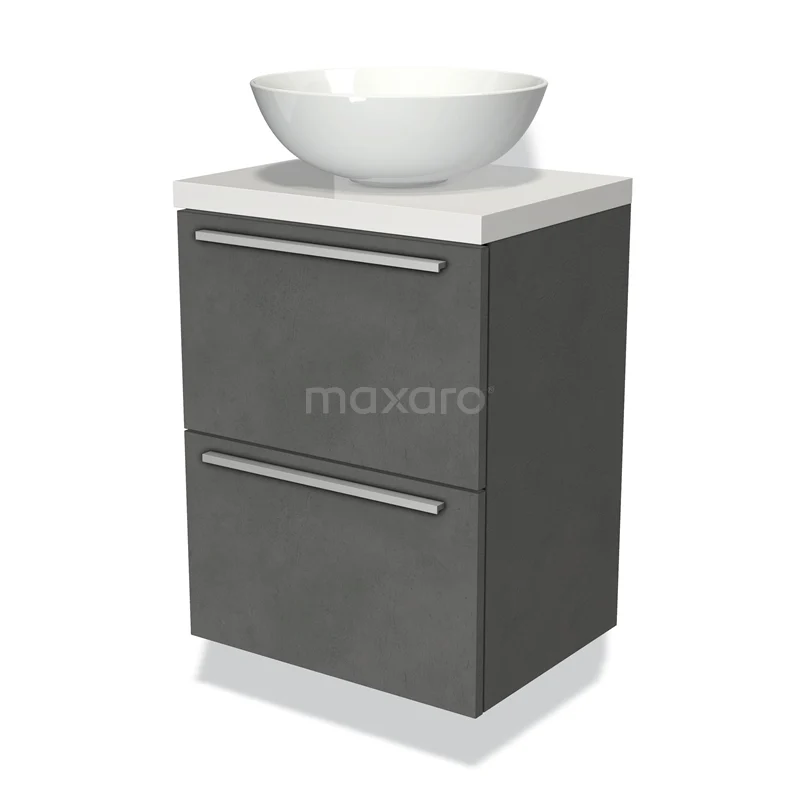 Badmöbel mit Konsole 50cm Modulo Plato Slim Dunkelgrau Beton 2 Schubladen Flach