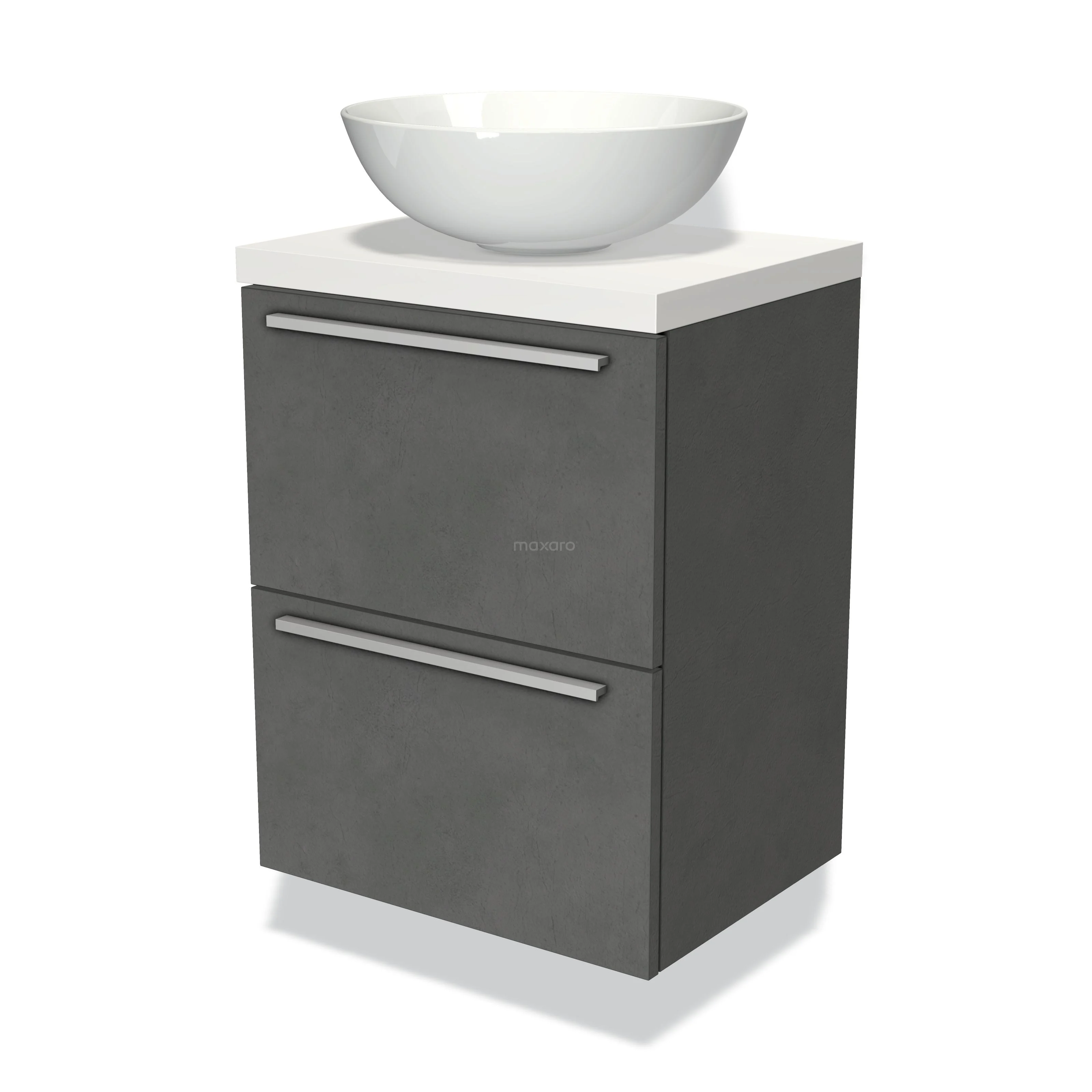 Badmöbel mit Konsole 50cm Modulo Plato Slim Dunkelgrau Beton 2 Schubladen Flach
