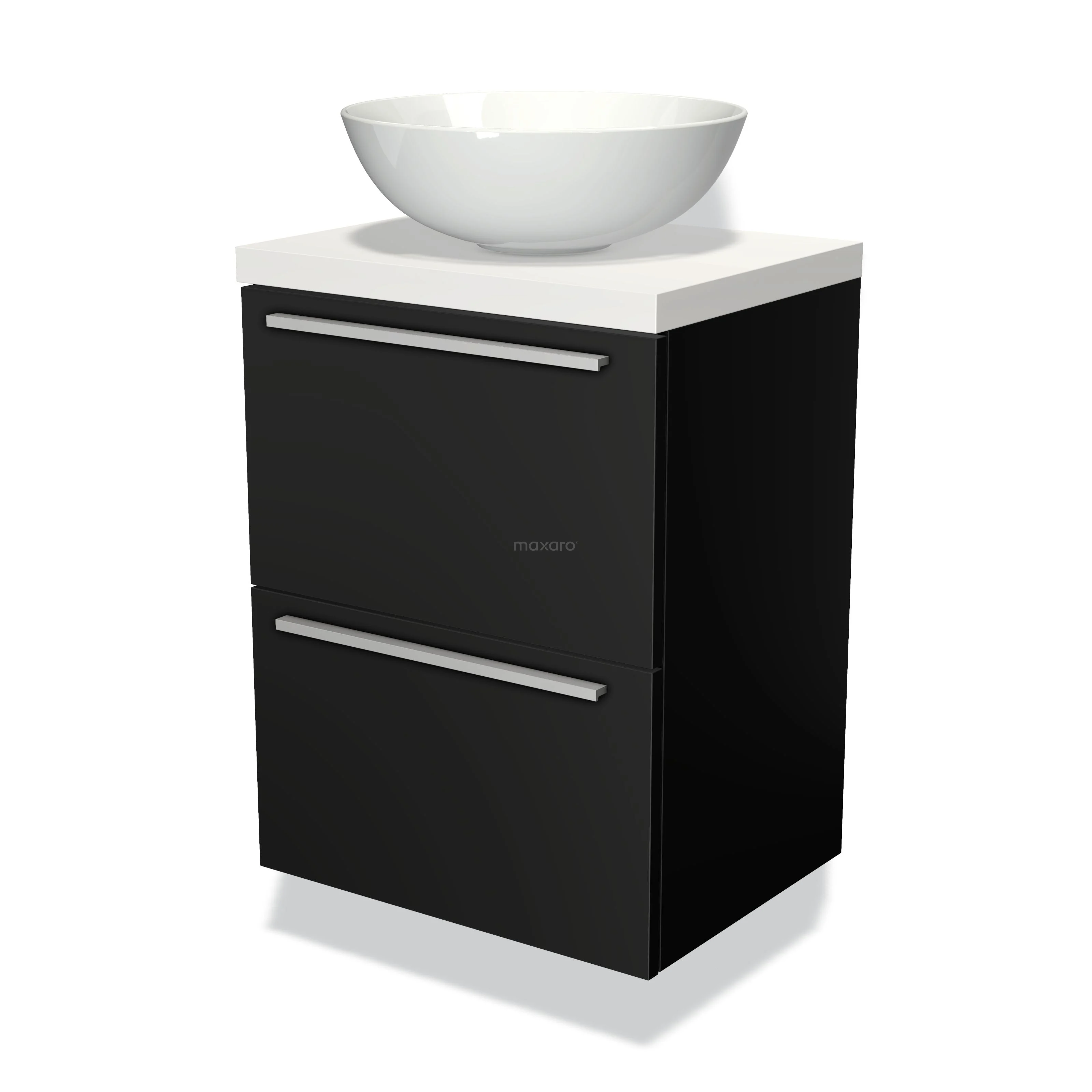 Badmöbel mit Konsole 50cm Modulo Plato Slim Matt Schwarz 2 Schubladen Flach