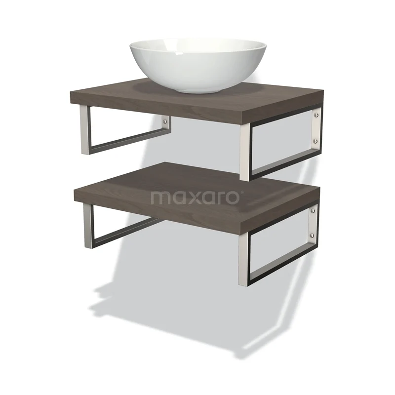 Badmöbel mit Konsole 60 cm Modulo Plato dunkelbraune Eiche 2 Waschtischplatten