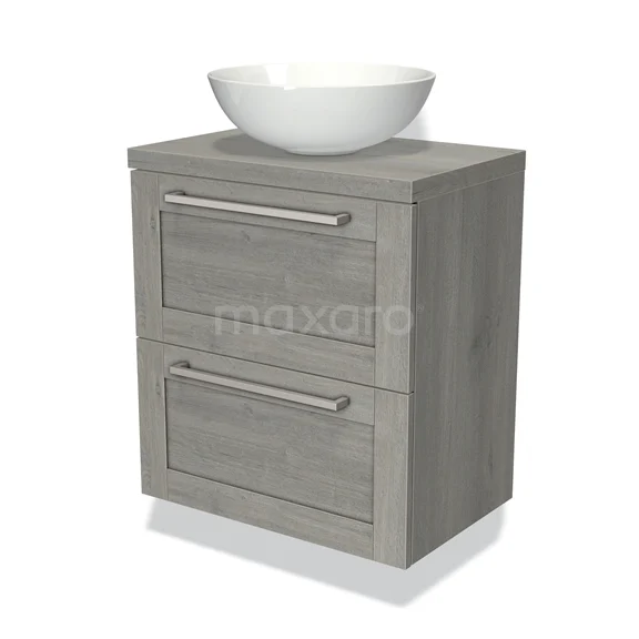 Badmöbel mit Konsole 60cm Modulo Plato Slim Graue Eiche 2 Schubladen Rahmen