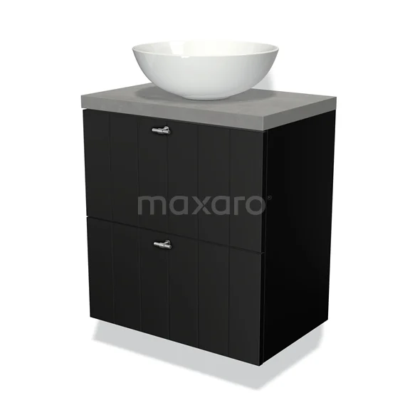 Badmöbel mit Konsole 60cm Modulo Plato Slim Matt Schwarz 2 Schubladen Laminat