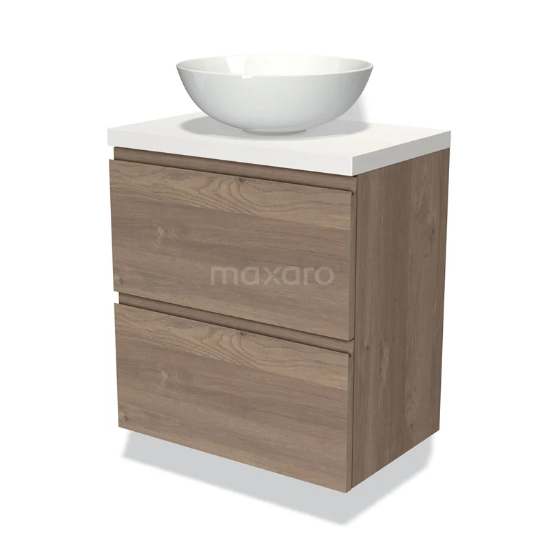 Badmöbel mit Konsole 60cm Modulo Plato Slim mittelbraune Eiche 2 Schubladen grifflos