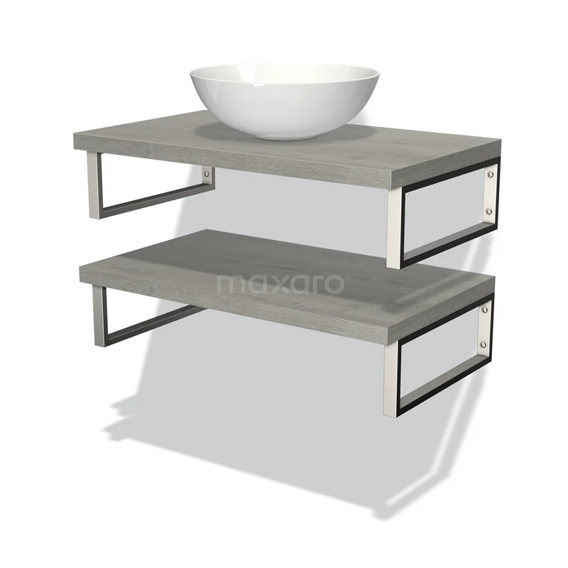 Badmöbel mit Konsole 80 cm Modulo Plato Graue Eiche 2 Waschtischplatten