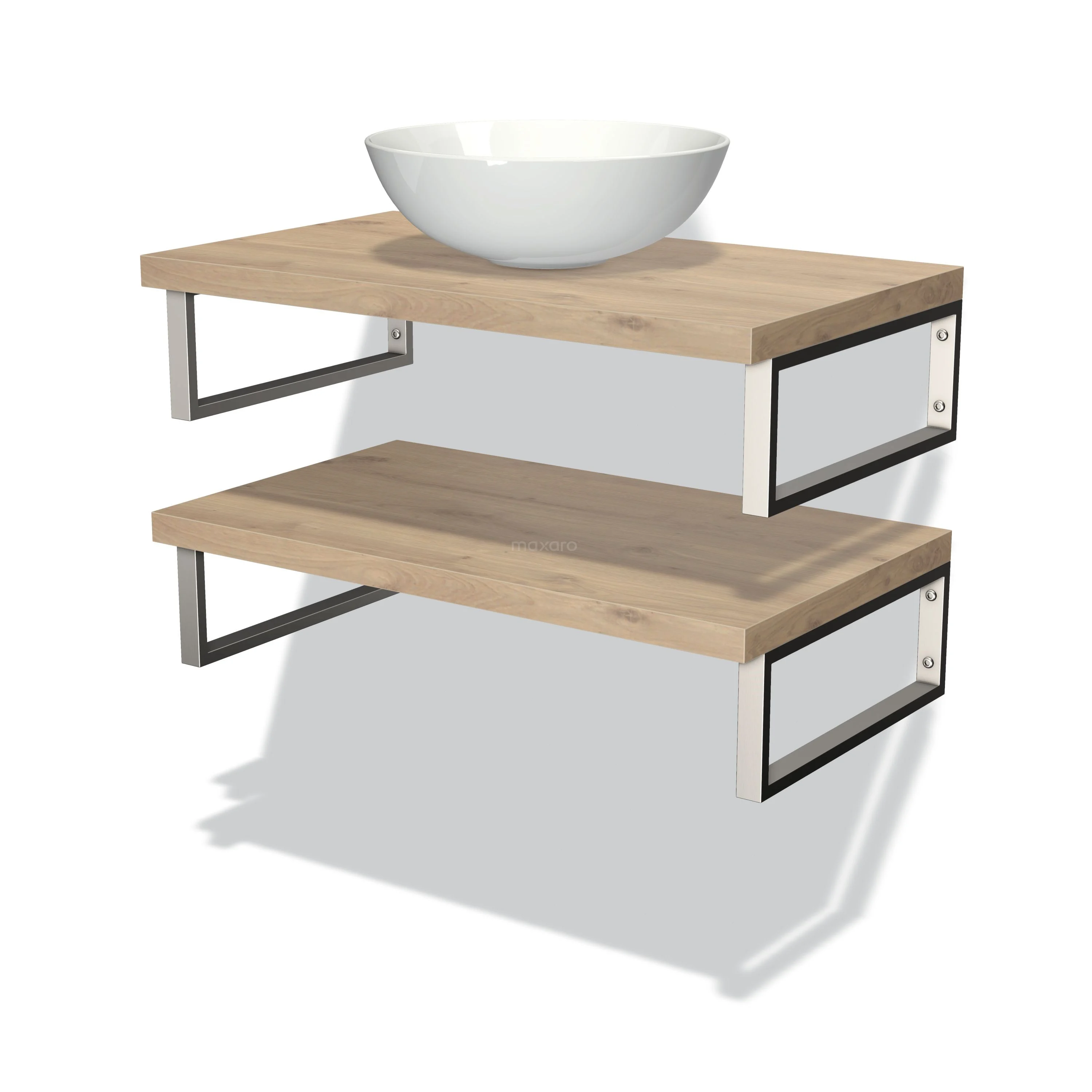 Badmöbel mit Konsole 80 cm Modulo Plato Hellbraune Eiche 2 Waschtischplatten