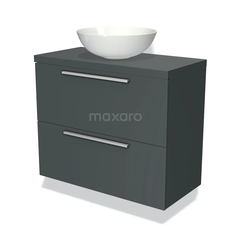 Modulo Plato Slim Badmöbel mit Aufsatzwaschbecken | 80 cm Dunkelgrau Flach front Dunkelgrau blatt 2 übereinanderliegende Schubladen