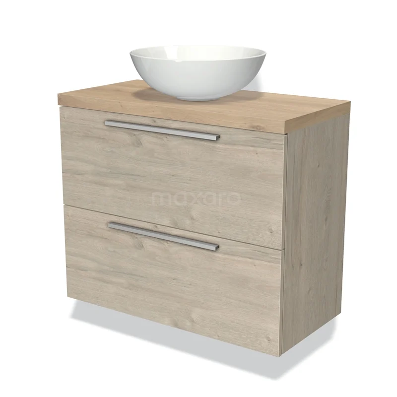 Badmöbel mit Konsole 80cm Modulo Plato Slim Hellgraue Eiche 2 Schubladen Flach
