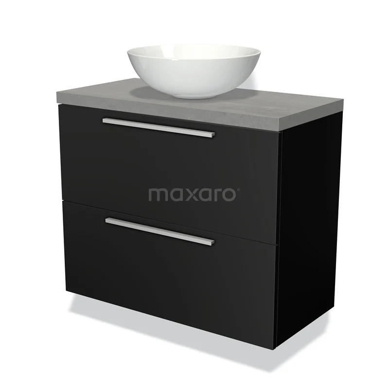 Badmöbel mit Konsole 80cm Modulo Plato Slim Matt Schwarz 2 Schubladen Flach