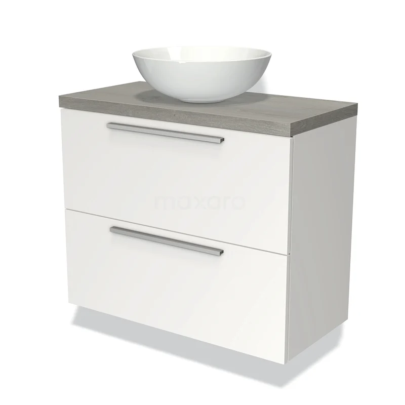 Badmöbel mit Konsole 80cm Modulo Plato Slim Matt Weiß 2 Schubladen Flach
