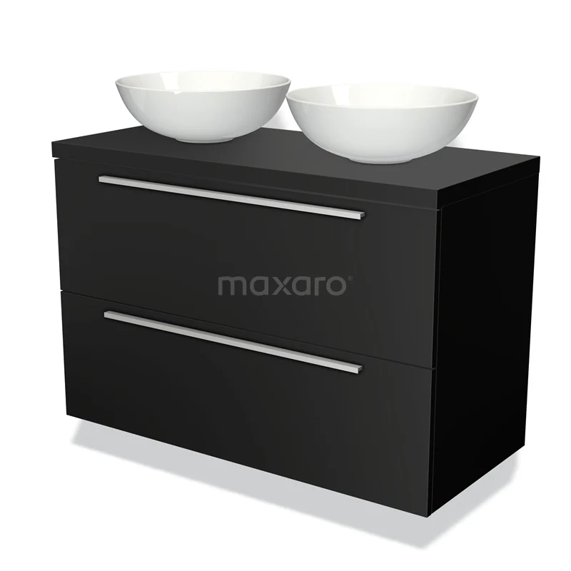 Badmöbelunterschrank mit Konsole 100cm Modulo Plato Matt Schwarz 2 Schubladen Flach