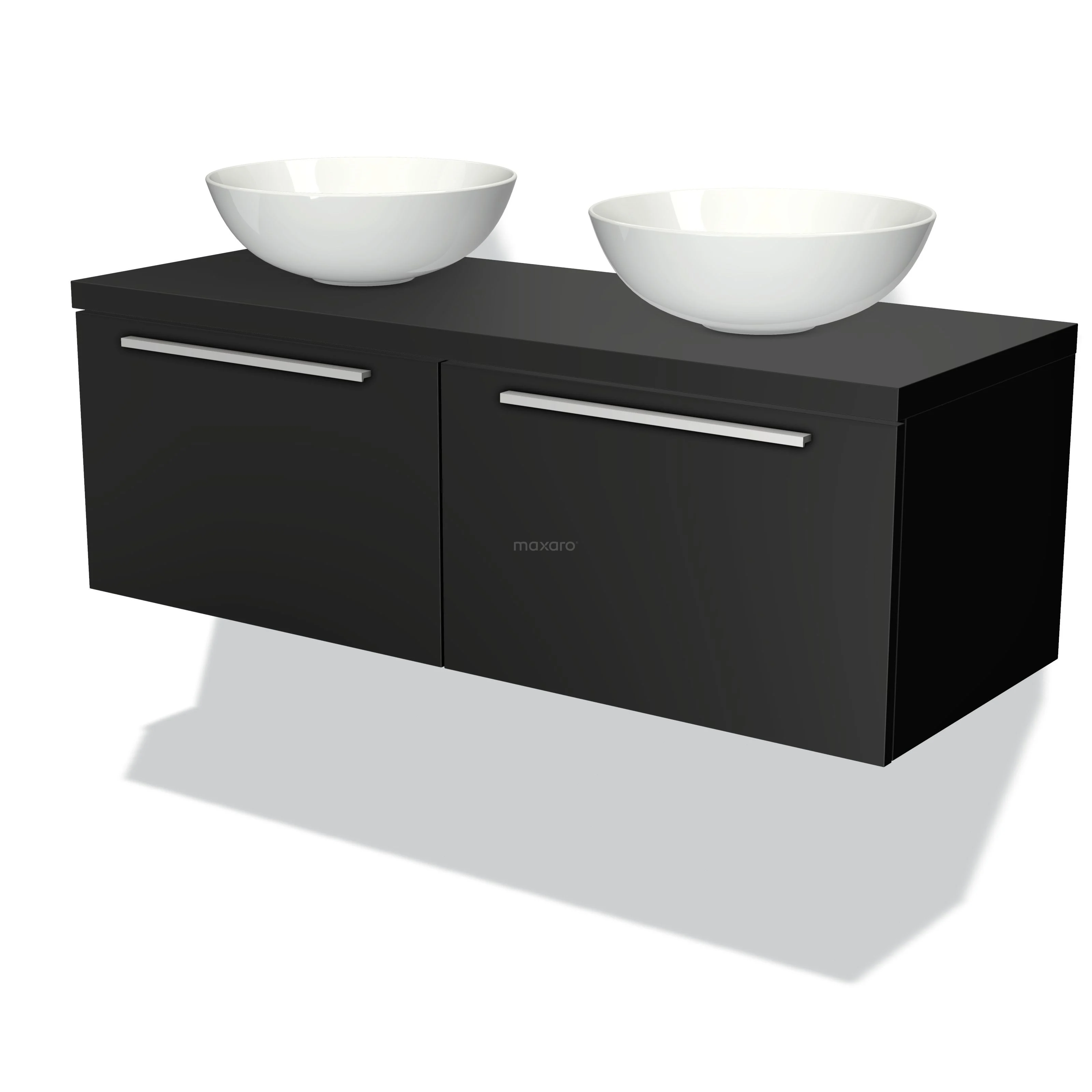 Badmöbelunterschrank mit Konsole 120cm Modulo Plato Matt Schwarz 2 Schubladen Flach