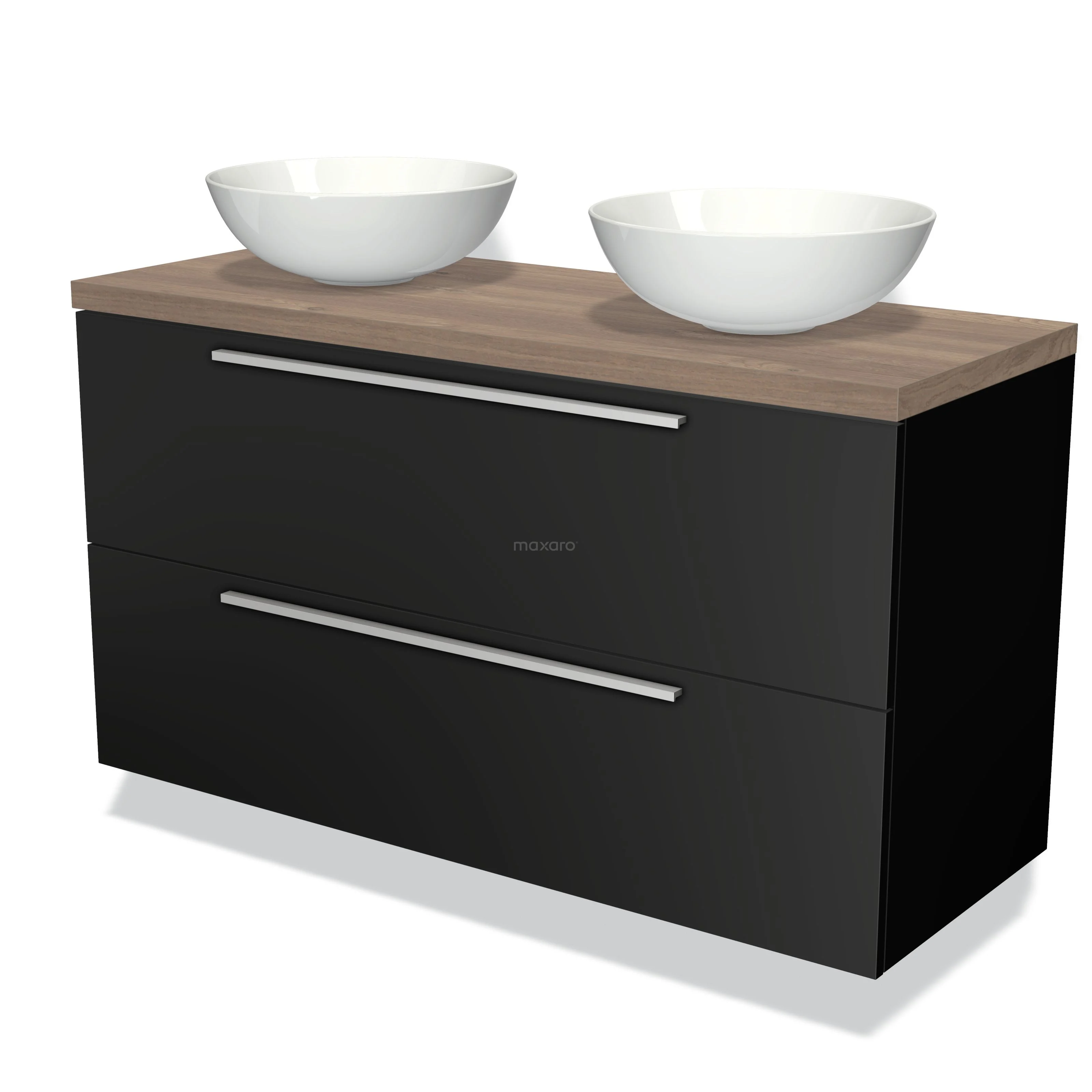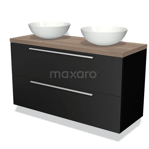 Badmöbelunterschrank mit Konsole 120cm Modulo Plato Matt Schwarz 2 Schubladen Flach Mittelbraune Eiche Platte