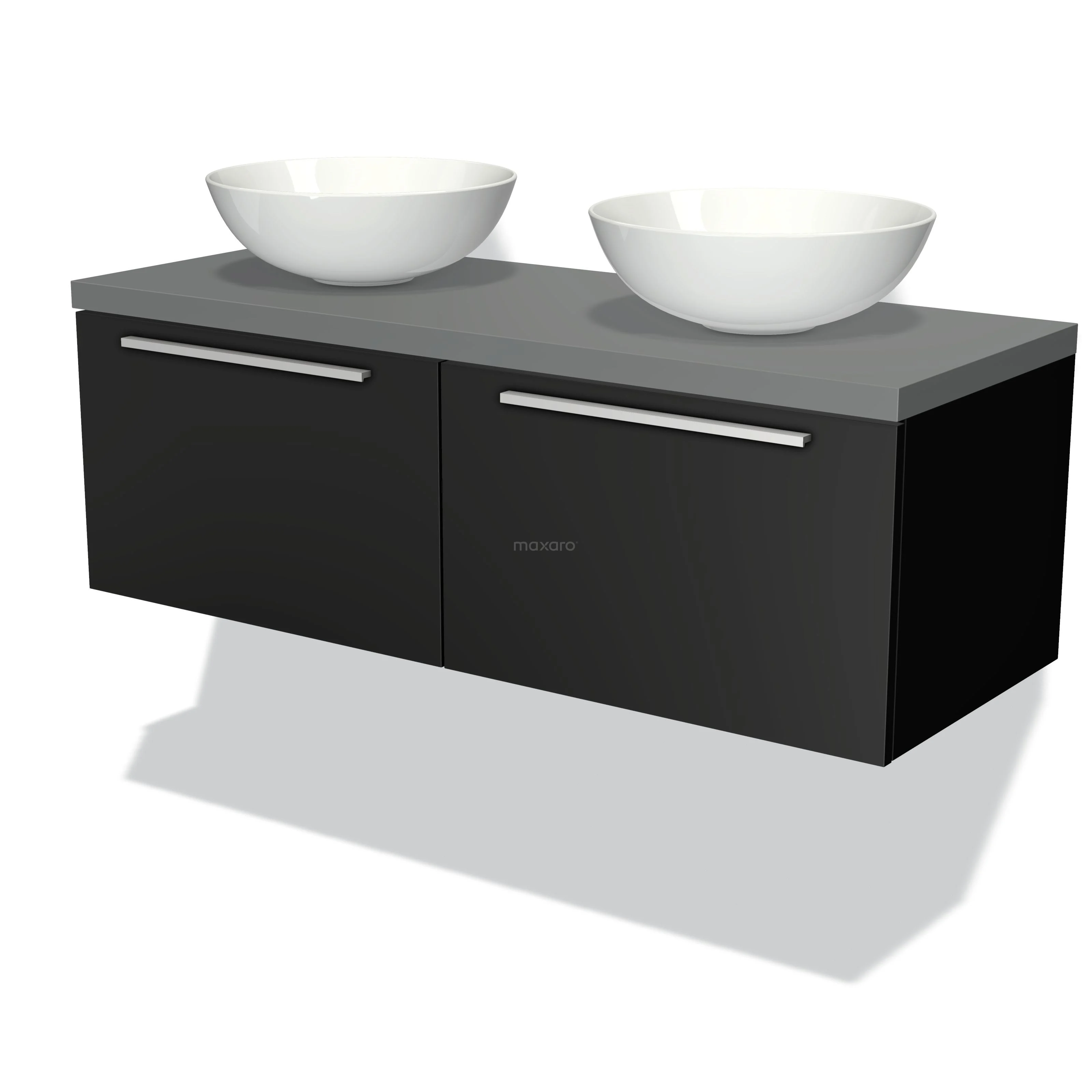 Badmöbelunterschrank mit Konsole 120cm Modulo Plato Matt Schwarz 2 Schubladen Flach Mittelgrau Platte