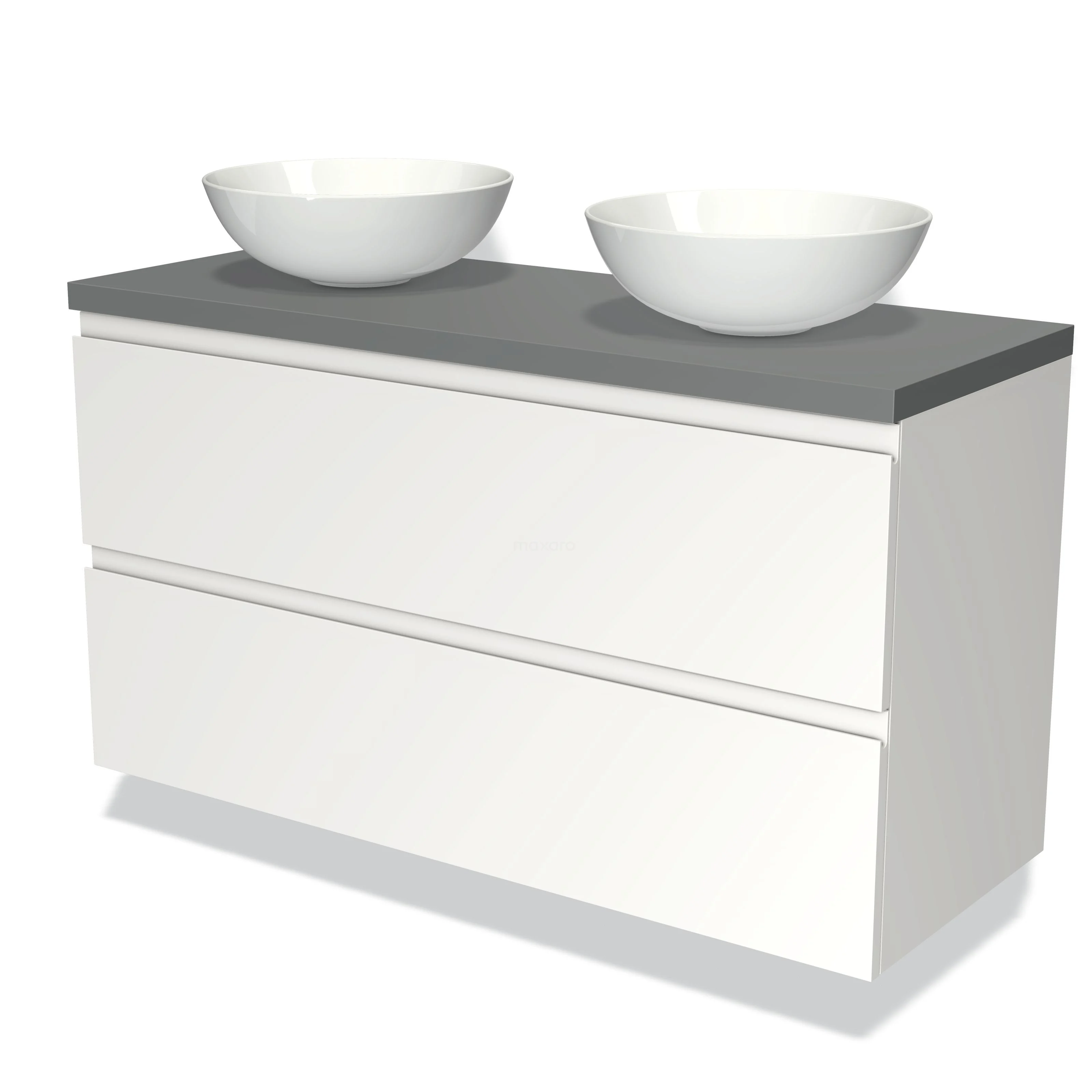 Badmöbelunterschrank mit Konsole 120cm Modulo Plato Matt Weiß 2 Schubladen Grifflos Mittelgrau Platte