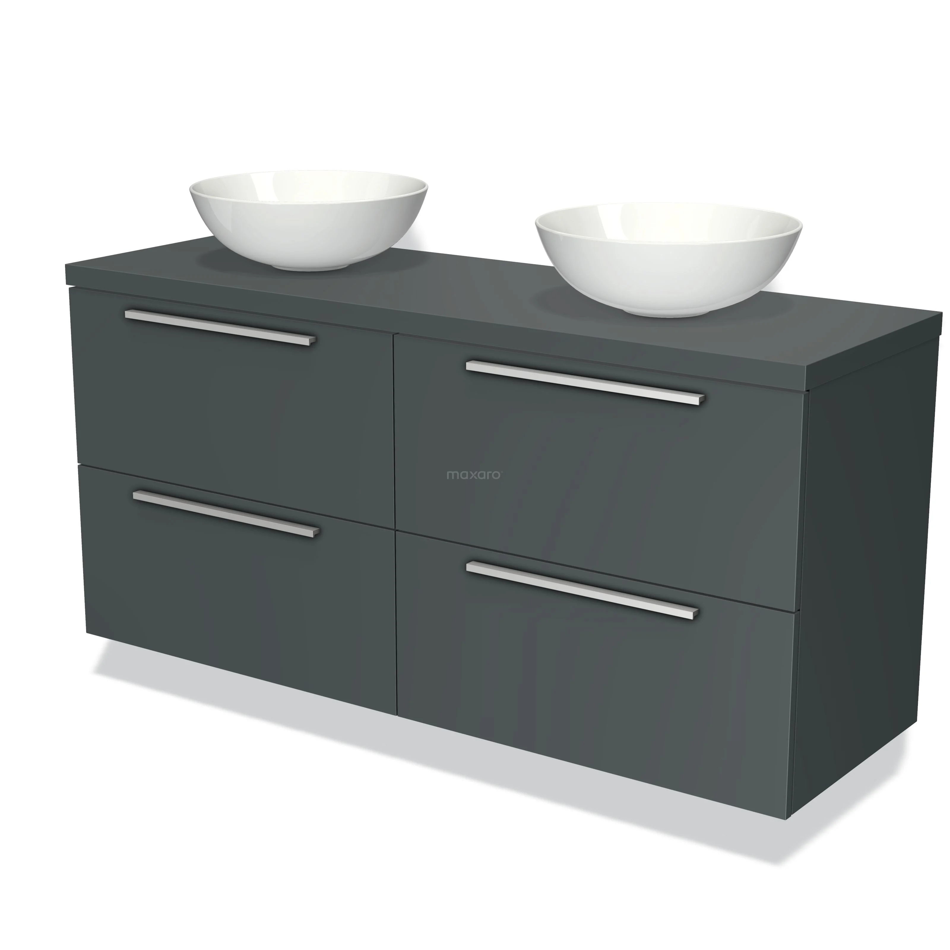 Badmöbelunterschrank mit Konsole 140 cm Modulo Plato Dunkelgrau 4 Schubladen Flach