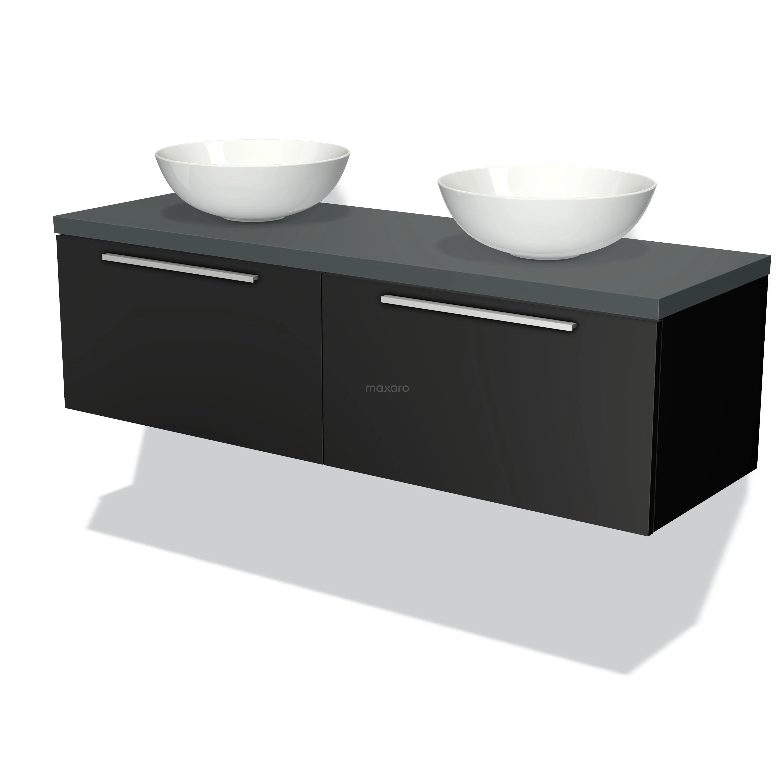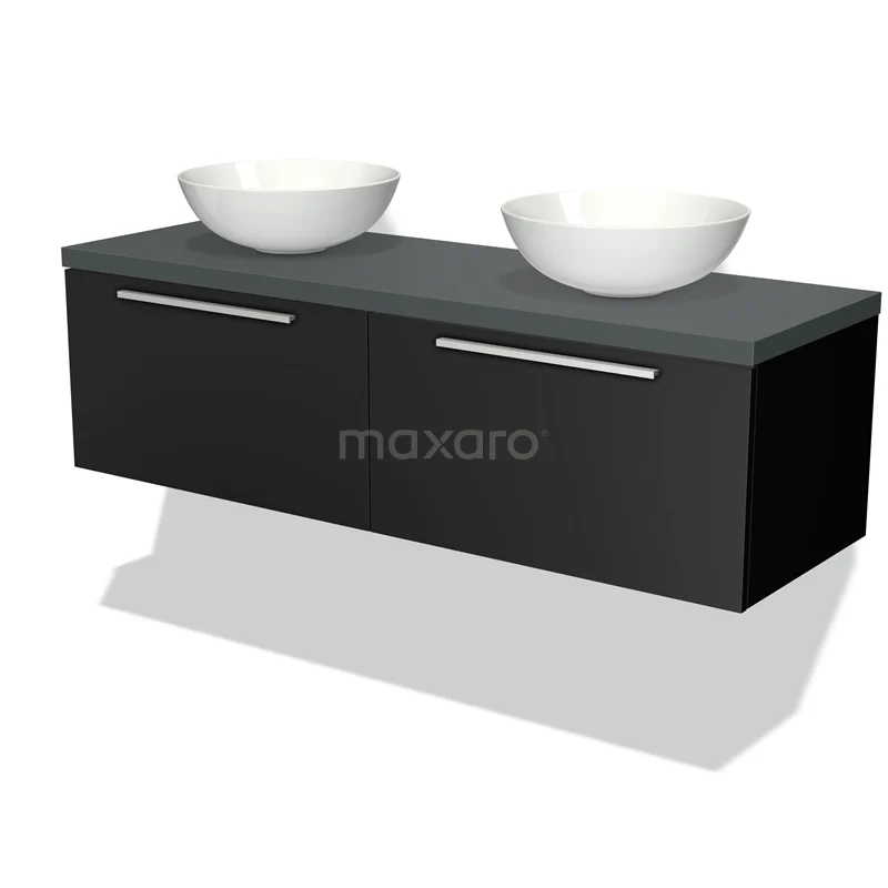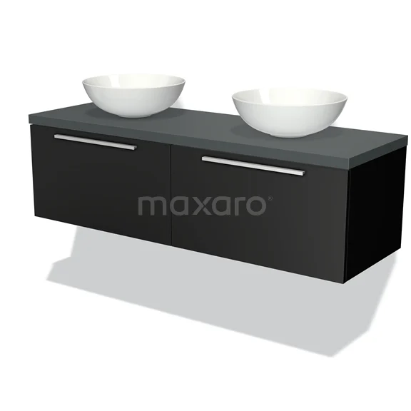 Badmöbelunterschrank mit Konsole 140cm Modulo Plato Matt Schwarz 2 Schubladen Flach Dunkelgrau Platte
