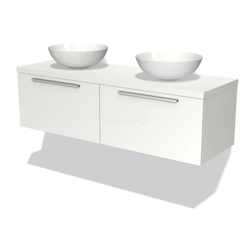 Badmöbelunterschrank mit Konsole 140cm Modulo Plato Matt Weiß 2 Schubladen Flach