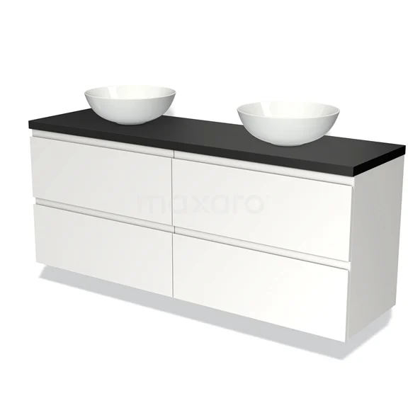 Badmöbelunterschrank mit Konsole 160cm Modulo Plato Matt Weiß 4 Schubladen Grifflos Matt Schwarz Platte