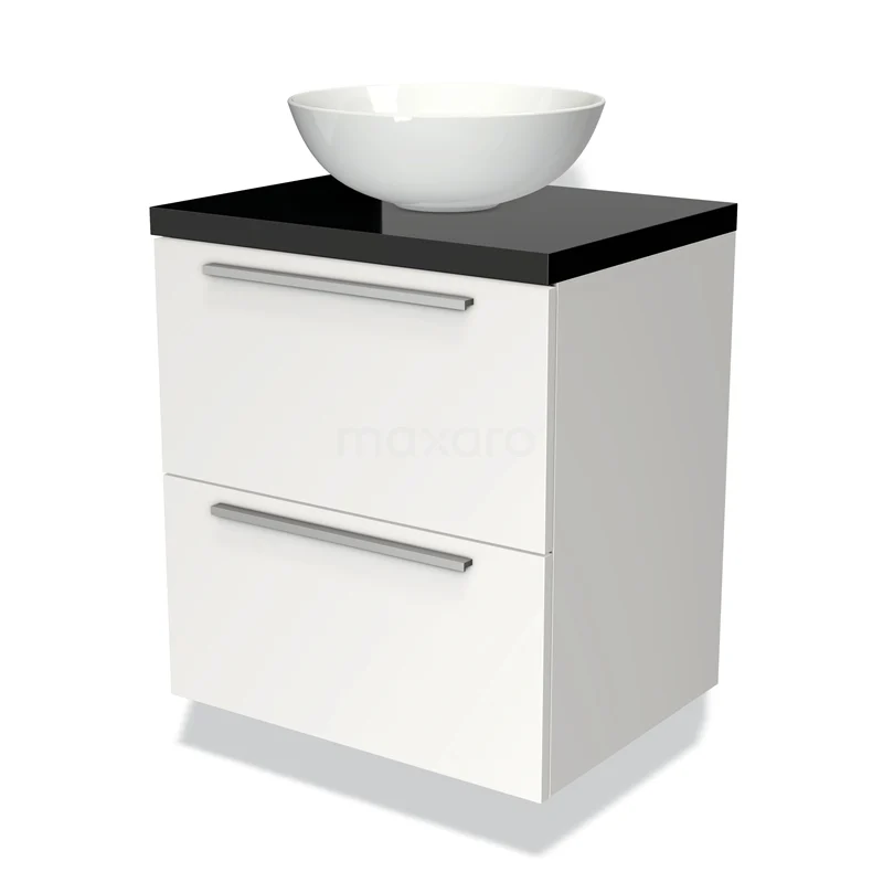 Badmöbelunterschrank mit Konsole 60cm Modulo Plato Matt Weiß 2 Schubladen Flach Hochglanz Schwarz Platte