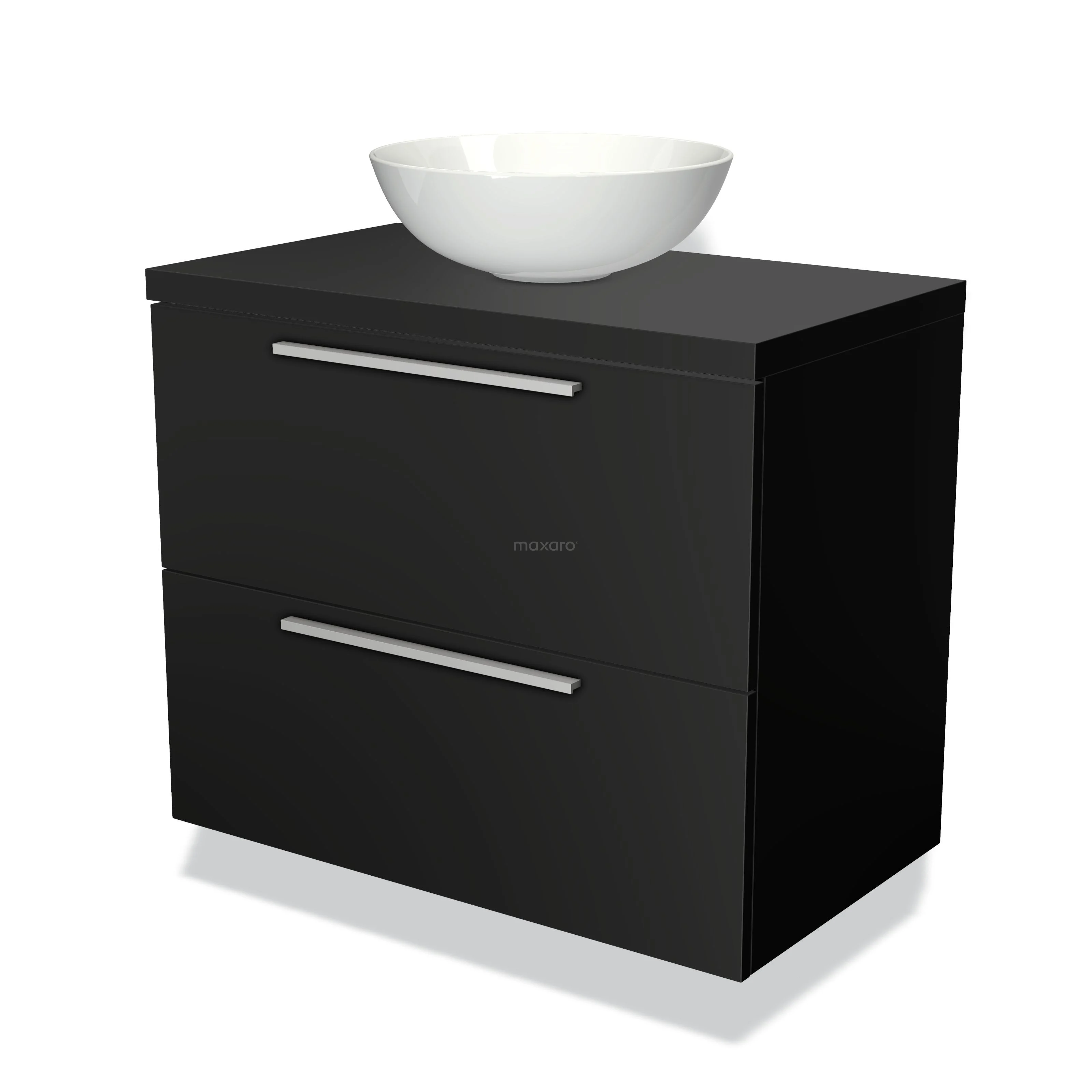 Badmöbelunterschrank mit Konsole 80cm Modulo Plato Matt Schwarz 2 Schubladen Flach