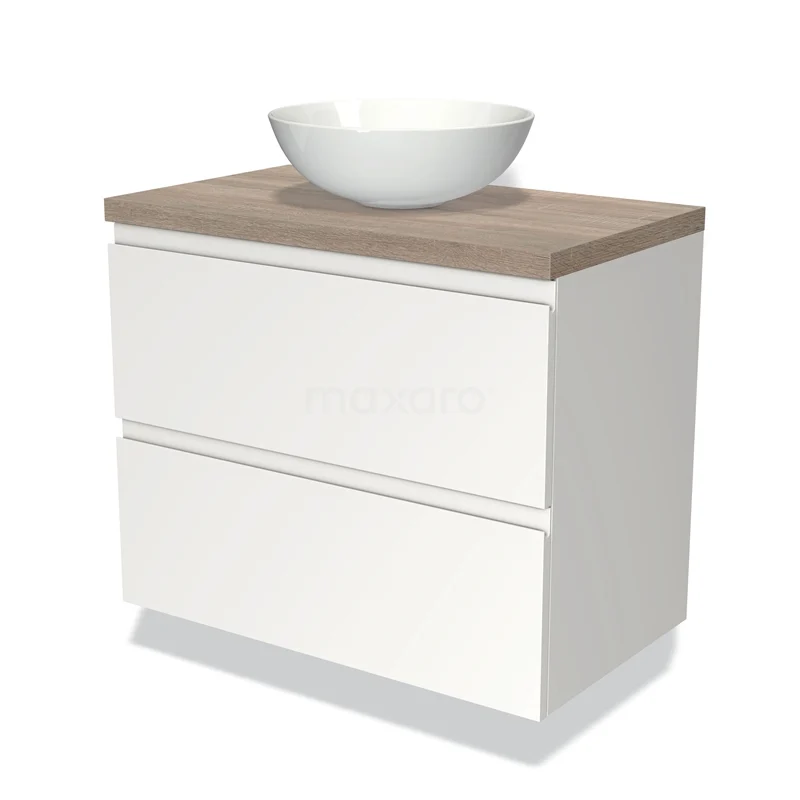 Badmöbelunterschrank mit Konsole 80cm Modulo Plato Matt Weiß 2 Schubladen Grifflose Platte aus Eiche