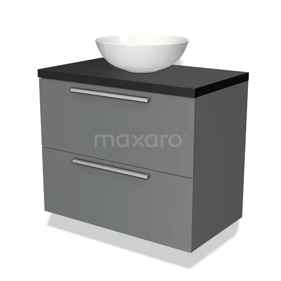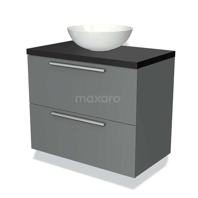 Badmöbelunterschrank mit Konsole 80cm Modulo Plato Mittelgrau 2 Schubladen Flach Matt Schwarz Platte