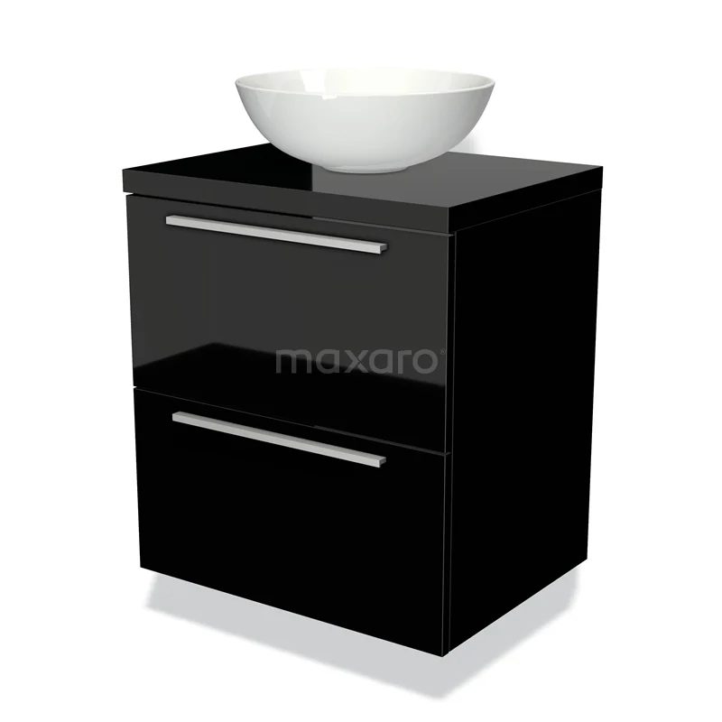 Hochglanz-Badmöbel für Aufsatzwaschbecken 60cm Modulo Plato Hochglanz Schwarz 2 Schubladen Flach
