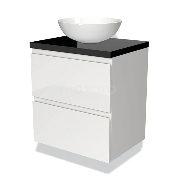 Hochglanz-Badmöbel für Aufsatzwaschbecken 60cm Modulo Plato Hochglanz Weiß 2 Schubladen Grifflos Hochglanz Schwarz Platte