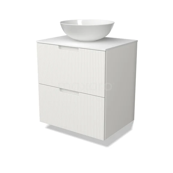 Modulo Plato Badmöbel mit Aufsatzwaschbecken | 60 cm Matt Weiß Linie front Solid Surface blatt 2 übereinanderliegende Schubladen