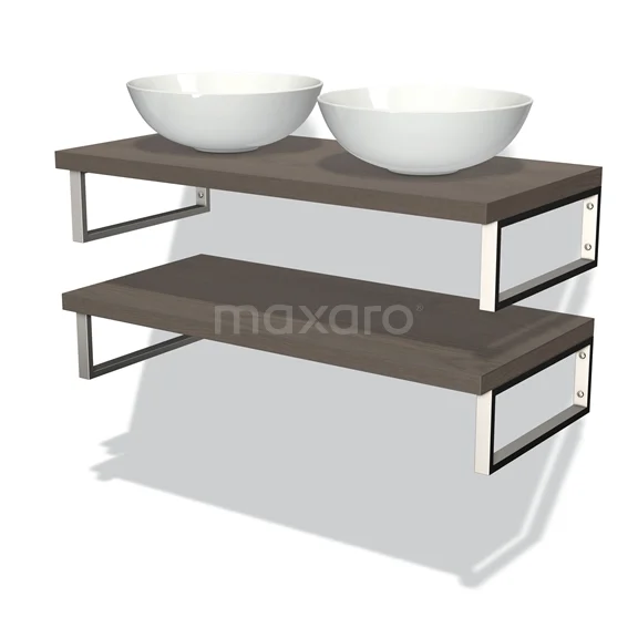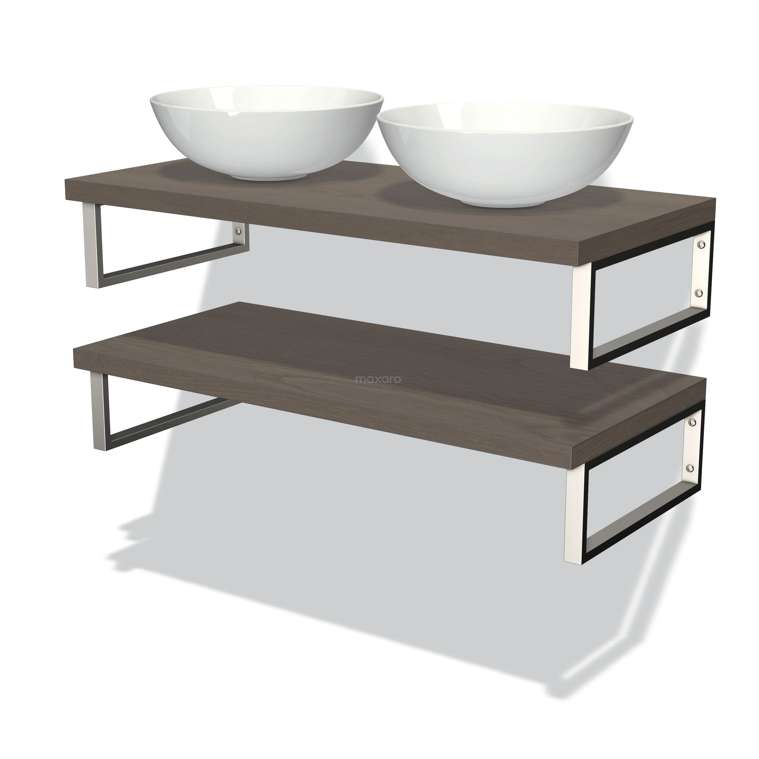 Modulo Plato Badmöbel mit Aufsatzwaschbecken | 100 cm Dunkelbraune Eiche front Dunkelbraune Eiche blatt 2 Waschtischplatten