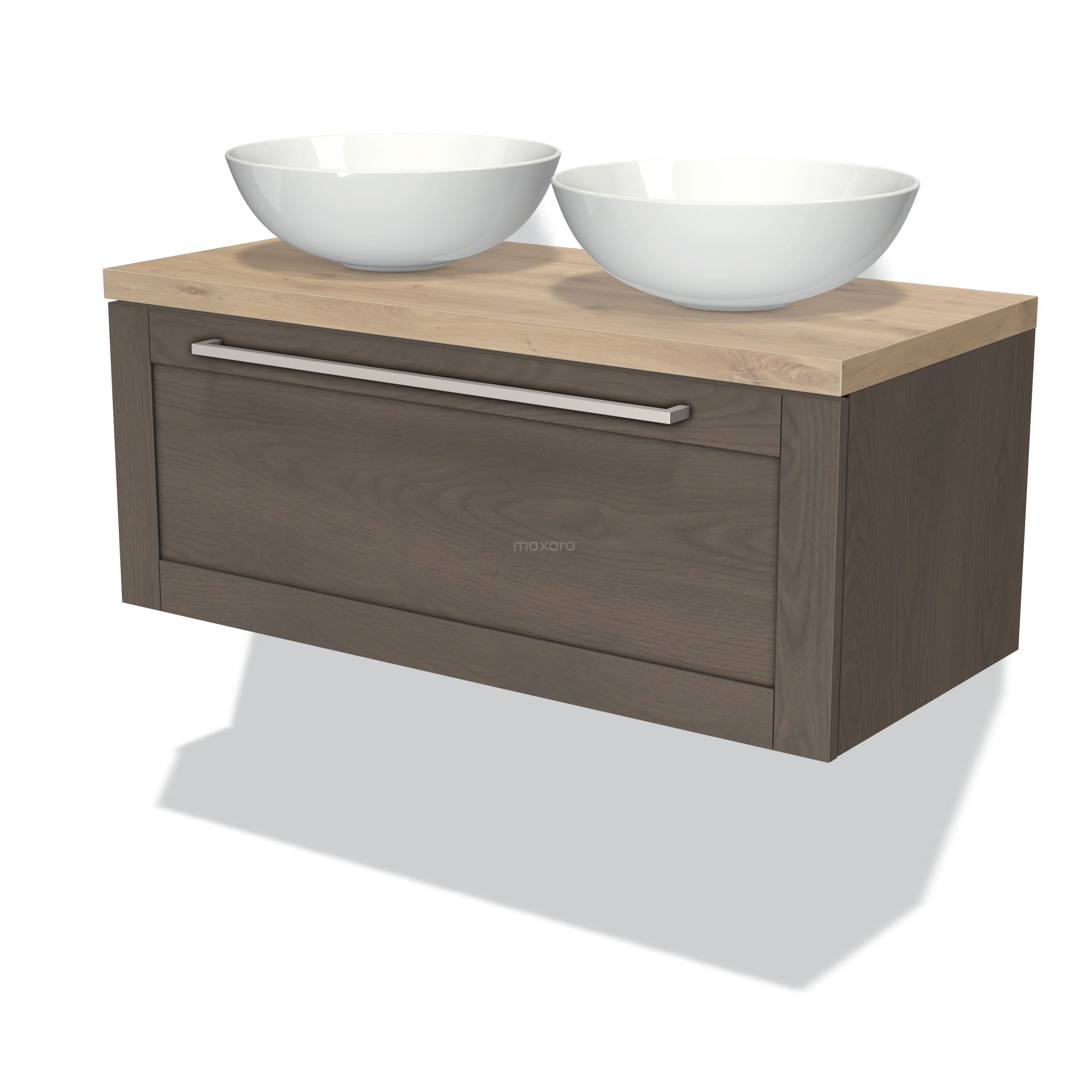 Modulo Plato Badmöbel mit Aufsatzwaschbecken | 100 cm Dunkelbraune Eiche Rahmen front Hellbraune Eiche blatt 1 Schublade