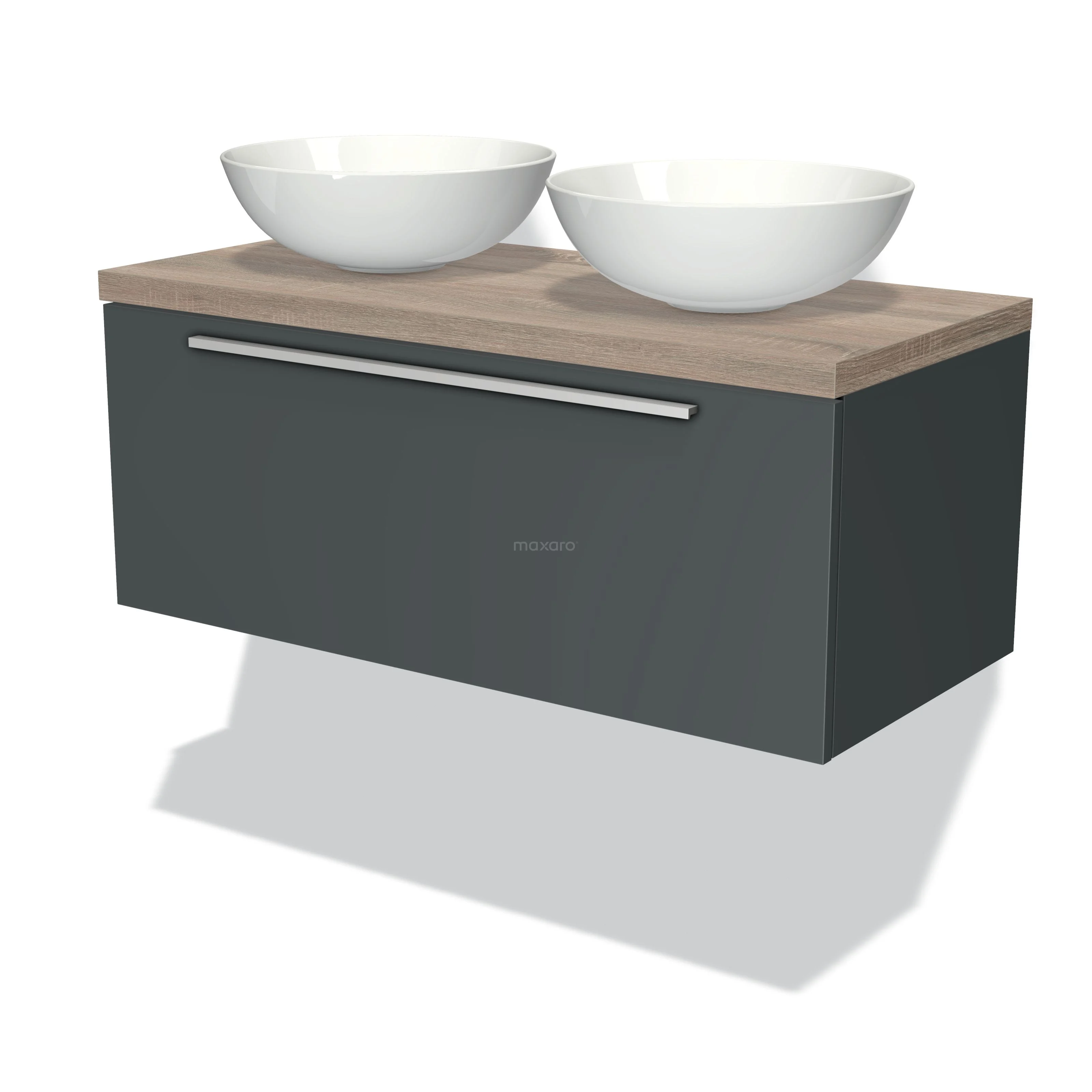 Modulo Plato Badmöbel mit Aufsatzwaschbecken | 100 cm Dunkelgrau Flach front Eiche blatt 1 Schublade