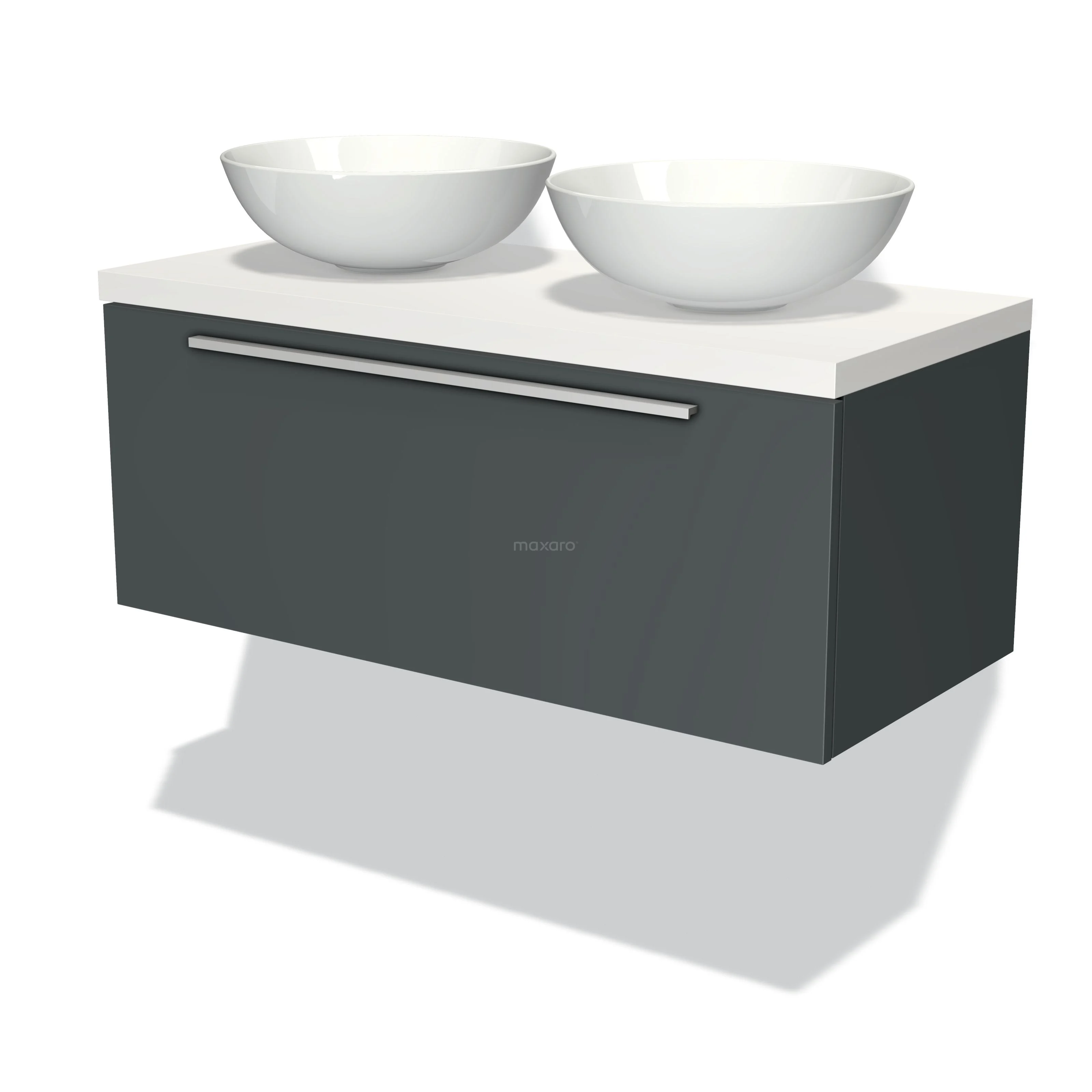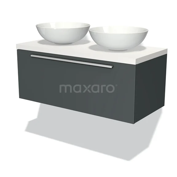 Modulo Plato Badmöbel mit Aufsatzwaschbecken | 100 cm Dunkelgrau Flach front Matt Weiß blatt 1 Schublade