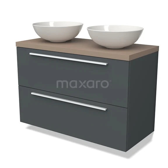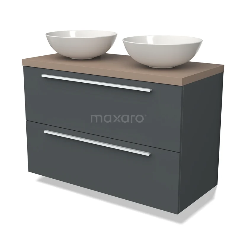 Modulo Plato Badmöbel mit Aufsatzwaschbecken | 100 cm Dunkelgrau Flach front Taupe blatt 2 übereinanderliegende Schubladen