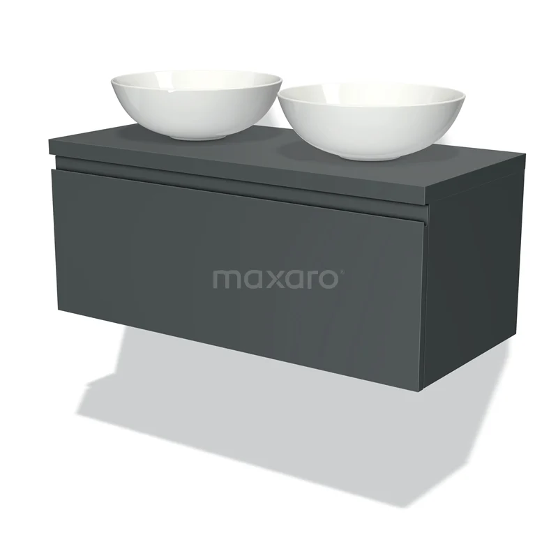 Modulo Plato Badmöbel mit Aufsatzwaschbecken | 100 cm Dunkelgrau Grifflos front Dunkelgrau blatt 1 Schublade
