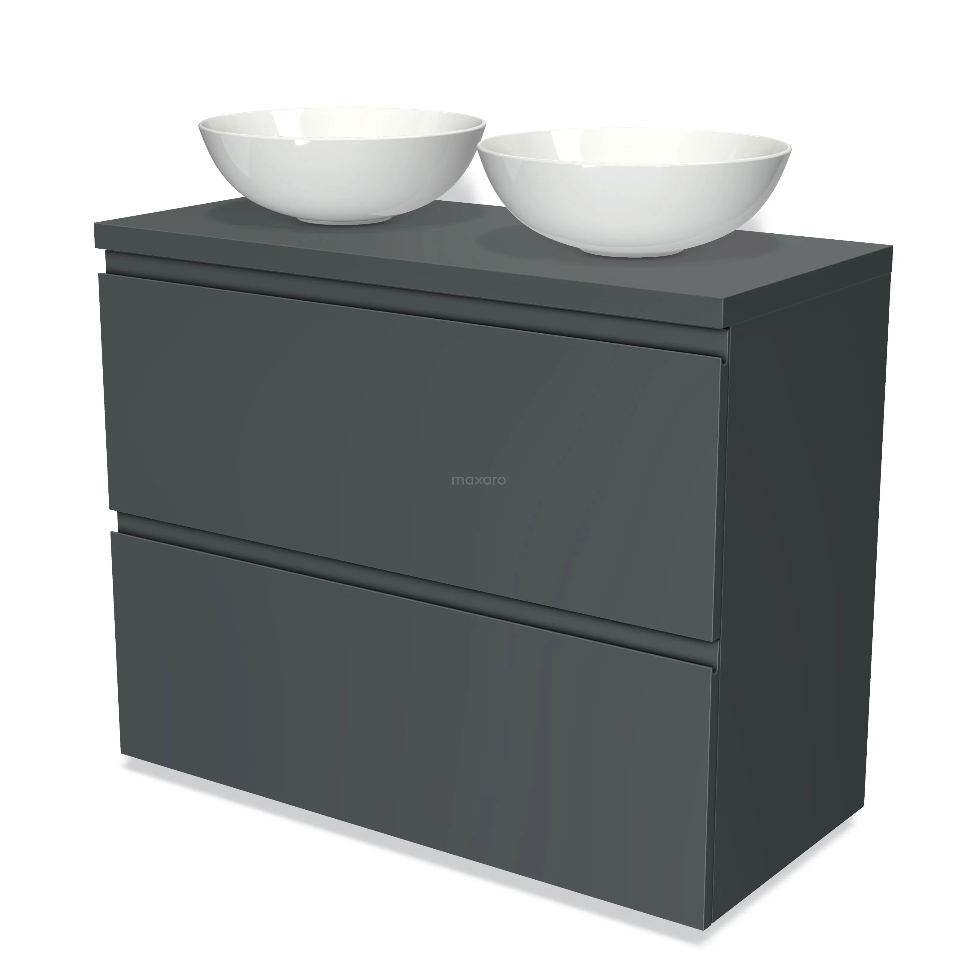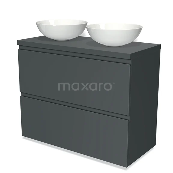 Modulo Plato Badmöbel mit Aufsatzwaschbecken | 100 cm Dunkelgrau Grifflos front Dunkelgrau blatt 2 hohe Schubladen übereinanderliegend