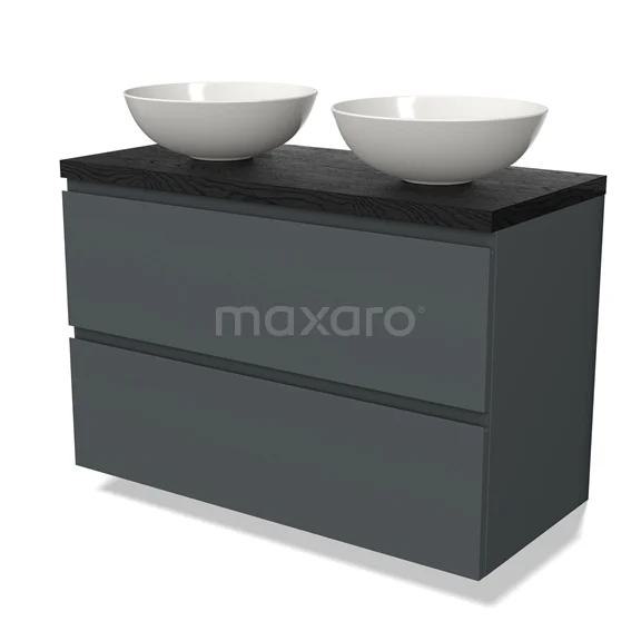 Modulo Plato Badmöbel mit Aufsatzwaschbecken | 100 cm Dunkelgrau Grifflos front Schwarze Eiche blatt 2 übereinanderliegende Schubladen