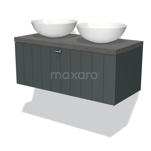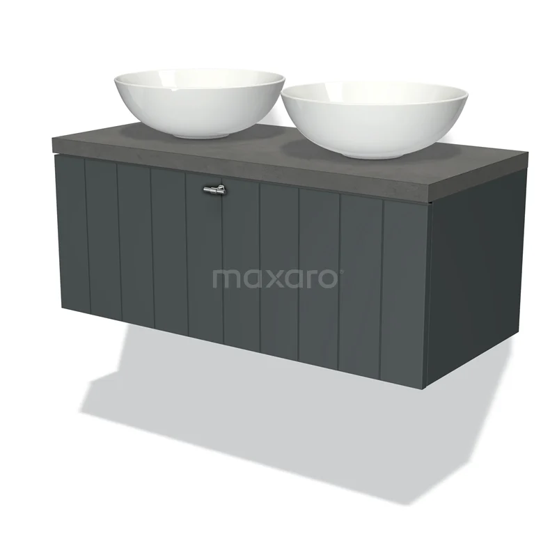 Modulo Plato Badmöbel mit Aufsatzwaschbecken | 100 cm Dunkelgrau Lamelle front Dunkelgrauer Beton blatt 1 Schublade