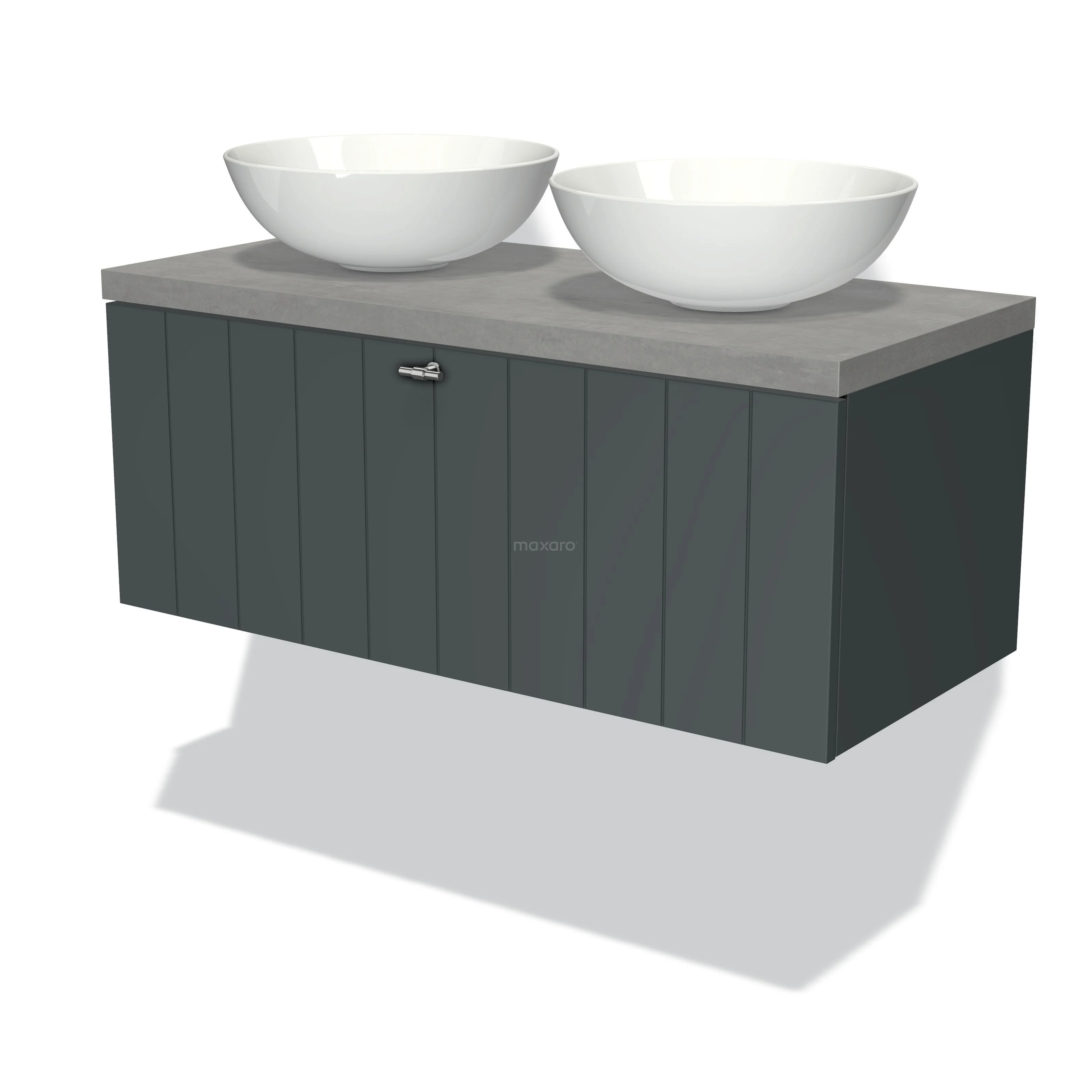 Modulo Plato Badmöbel mit Aufsatzwaschbecken | 100 cm Dunkelgrau Lamelle front Hellgrauer Beton blatt 1 Schublade