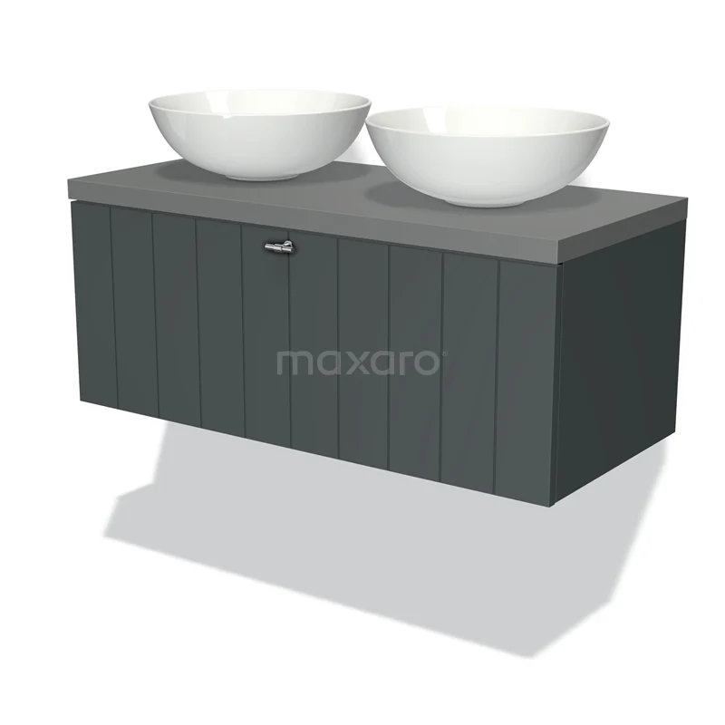 Modulo Plato Badmöbel mit Aufsatzwaschbecken | 100 cm Dunkelgrau Lamelle front Mittelgrau blatt 1 Schublade