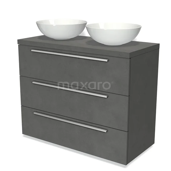 Modulo Plato Badmöbel mit Aufsatzwaschbecken | 100 cm Dunkelgrauer Beton Flach front Dunkelgrauer Beton blatt 3 Schubladen