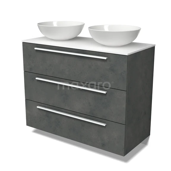 Modulo Plato Badmöbel mit Aufsatzwaschbecken | 100 cm Dunkelgrauer Beton Flach front Solid Surface blatt 3 Schubladen