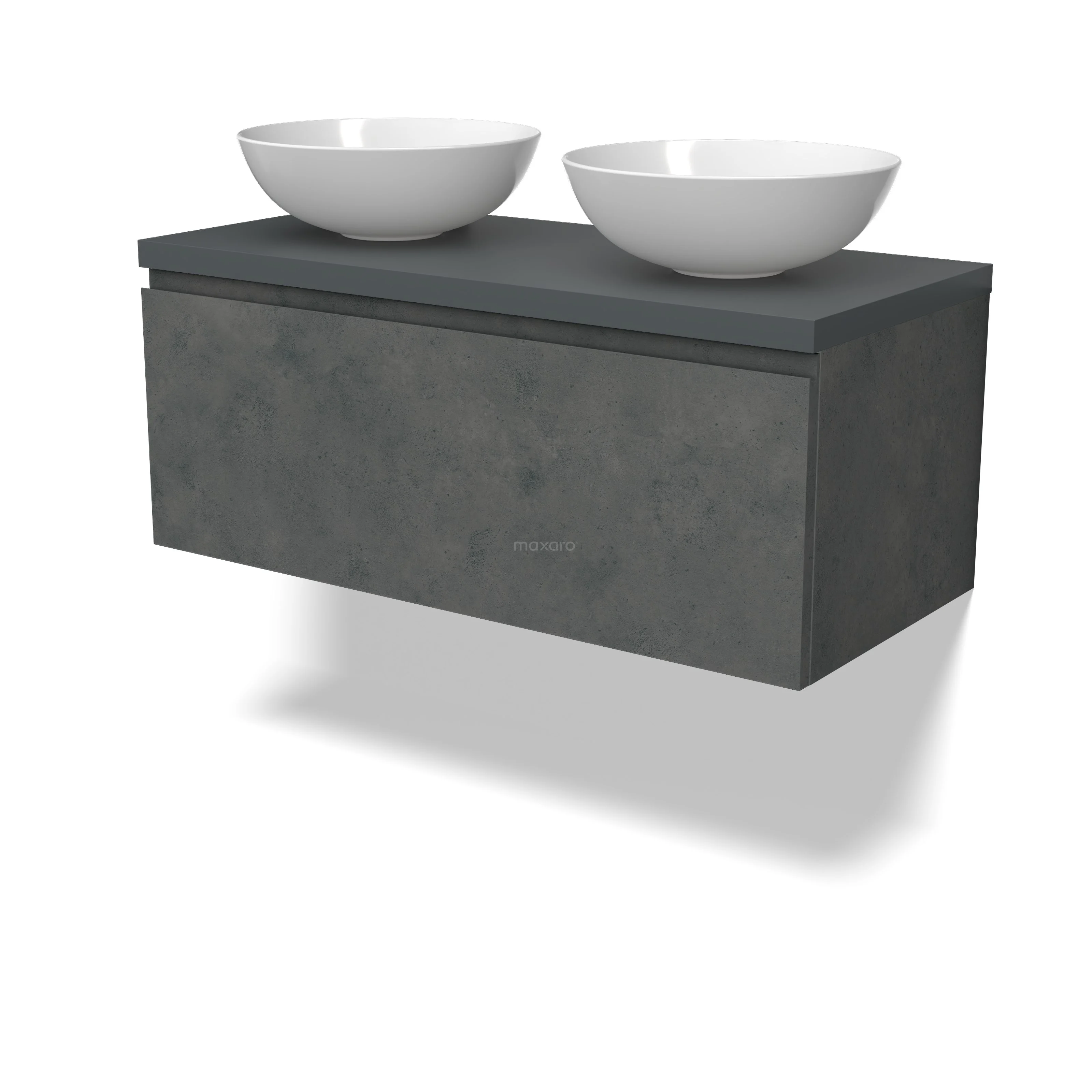 Modulo Plato Badmöbel mit Aufsatzwaschbecken | 100 cm Dunkelgrauer Beton Grifflos front Dunkelgrau blatt 1 Schublade