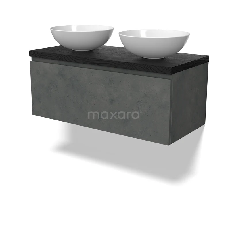 Modulo Plato Badmöbel mit Aufsatzwaschbecken | 100 cm Dunkelgrauer Beton Grifflos front Schwarze Eiche blatt 1 Schublade